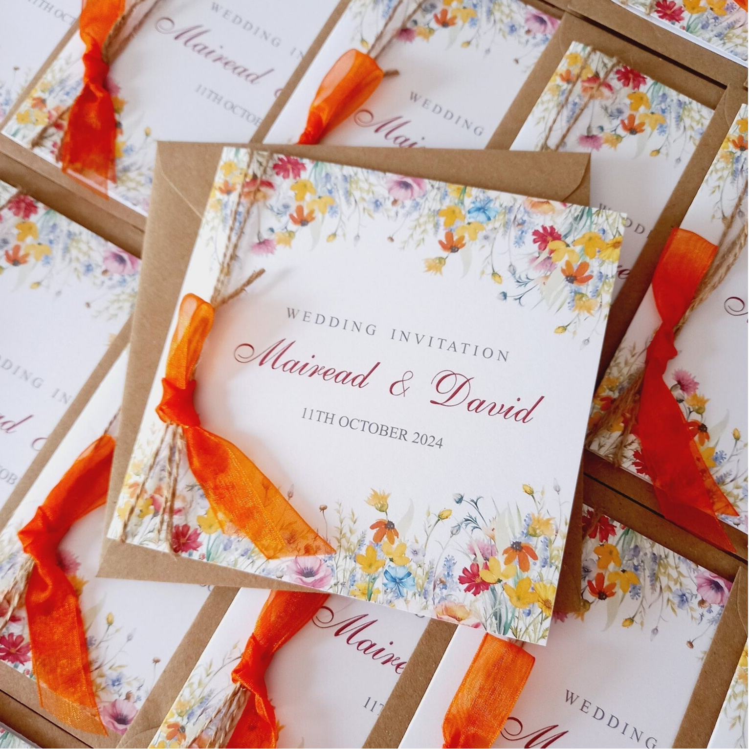 Starting from €2.50 per invitation – includes invitation, twine & organza and envelope.